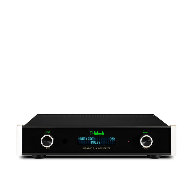 Sieben Digitaleingänge stehen bereit: je zwei Coax‑ und Optical‑SPDIF, USB‑B für Hi‑Res‑Streaming, ein MCT‑Link für McIntosh‑Transporte und ein ARC‑fähiger HDMI‑Port, der Dolby‑ und DTS‑Streams zweikanalig ausgibt.