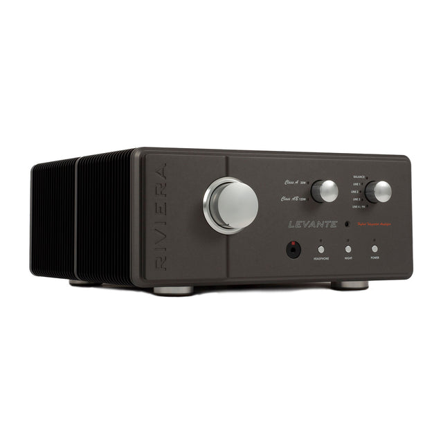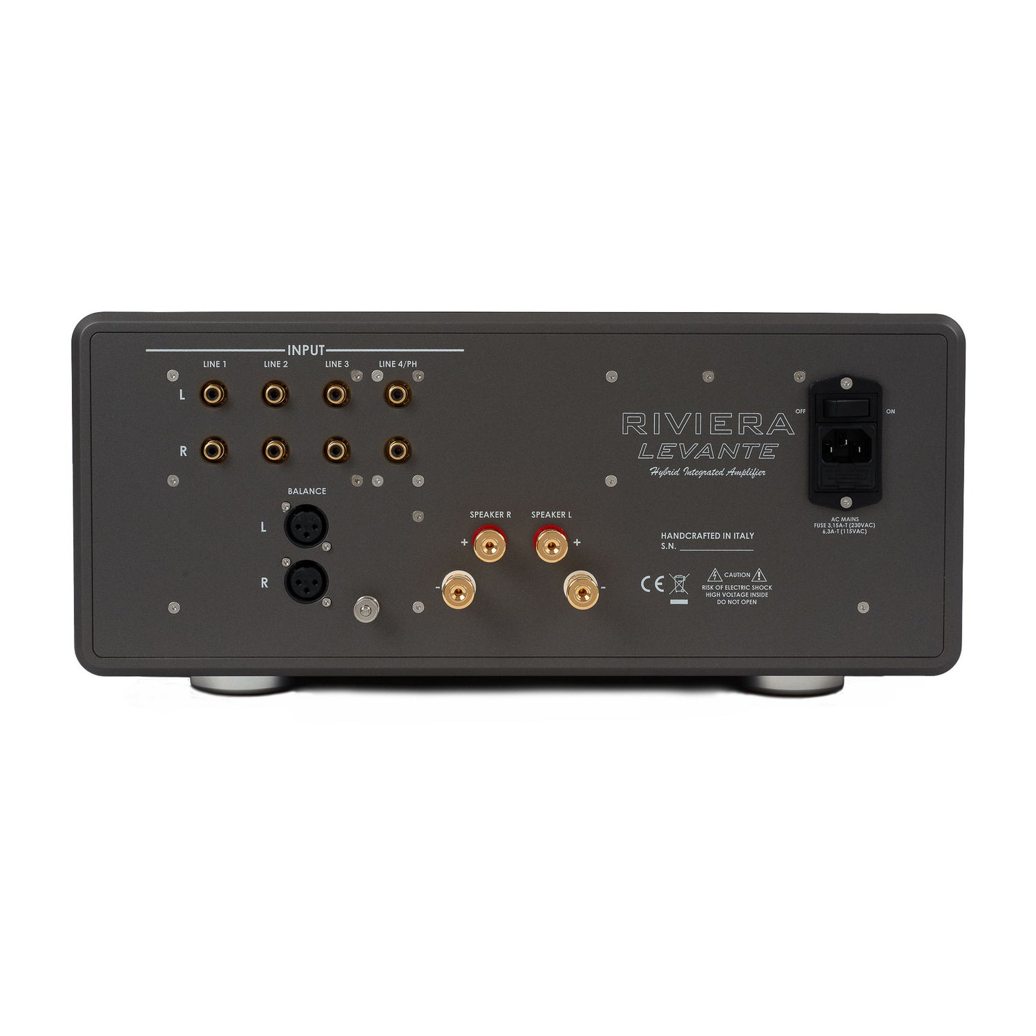 LEVANTE ist bei Riviera als integrierter Verstärker positioniert und ausdrücklich für den Betrieb mit unterschiedlichsten Lautsprechern ausgelegt. Die Umschaltung der Betriebsart erfolgt über einen Schalter an der Front; ein Mikroprozessor steuert den Wechsel, indem die Ausgangsstufe kurz deaktiviert und im gewählten Modus wieder zugeschaltet wird. Optional kann der LEVANTE mit dem Phono-Modul PH1 ausgestattet werden (MM, eigenes Netzteil).