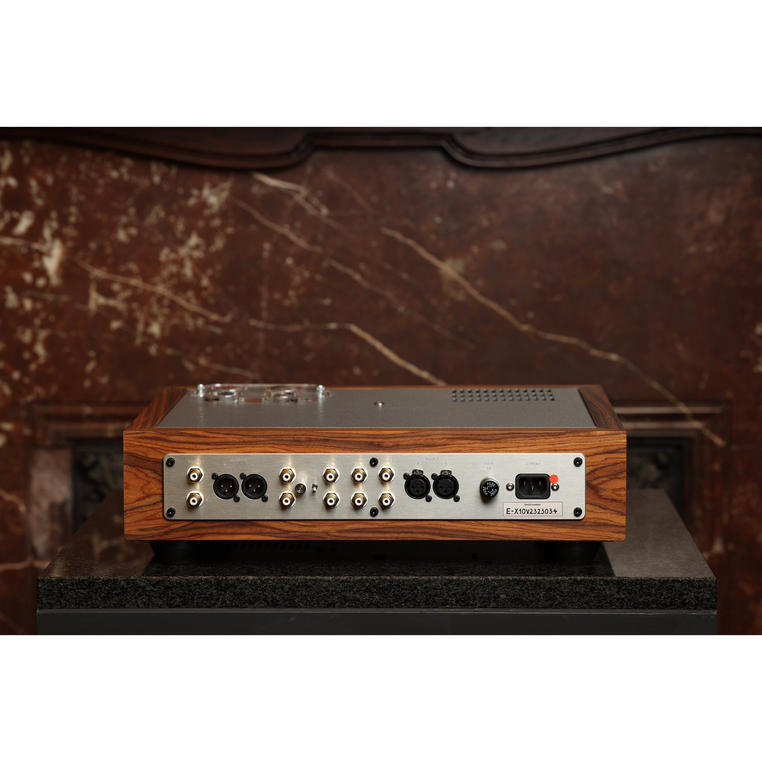 Vollwertige MM/MC-RIAA-Phonostufe mit einstellbaren Lasten, rauscharmes Design mit separaten Versorgungen je Verstärkerstufe, zusätzliche vollsymmetrische XLR-Ausgabe, minimalisierte Signalwege mit hochwertigen Bauteilen sowie OPT-Ausgangsübertrager für dichten, geschmeidigen Ton und ausgezeichnete Bühne – ideal als Schaltzentrale für Vinyl- und Digitalketten.