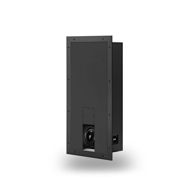 Das geschlossene, patentierte Akustik-Ladeprinzip (sealed, „Patented Acoustical Load“) sorgt für reproduzierbare Performance unabhängig von der Einbausituation. Die frontseitige Zero-Vibration-Baffle minimiert Körperschall und hält Vibrationen von der Wand fern. Optional ist eine quadratische, magnetische Frontabdeckung erhältlich, die die Chassis schützt, ohne die Klangqualität zu beeinträchtigen.