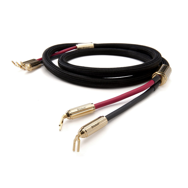 Die optionalen Bi‑Wire‑Kabel führen Hoch‑ und Tieftonzweig separat. Vier identische Leiterpaare reduzieren Intermodulationsverzerrungen und verbessern Stereobühne und Detailzeichnung.