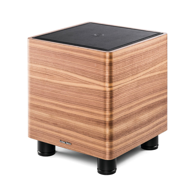 Der kompakte, aktive Subwoofer arbeitet als geschlossenes System mit nach unten abstrahlendem Treiber. Er ergänzt Ästhetik und Akustik der Lumina-Kollektion sowie kleinerer Sonetto-Bookshelf-Modelle wie Sonetto I & II.