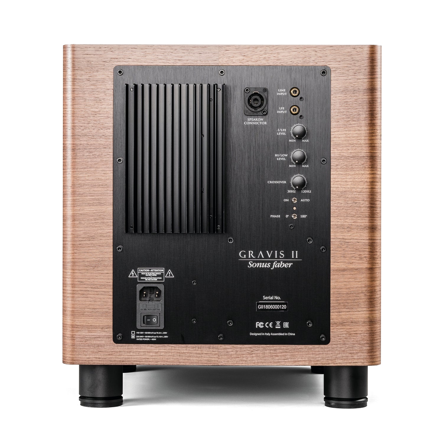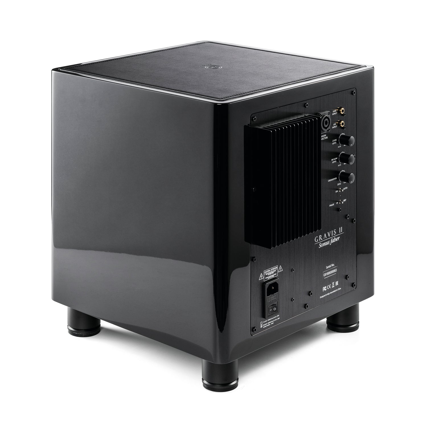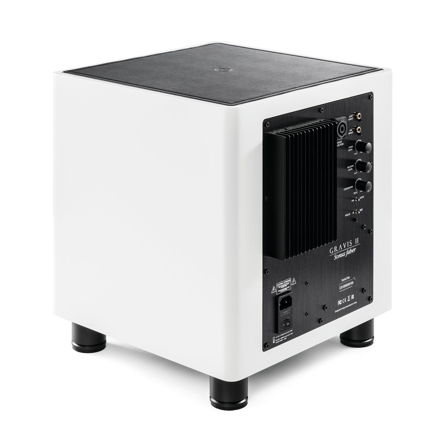 Der Gravis II kombiniert einen downfiring 26-cm-Aktivtreiber mit einem frontseitigen 26-cm-Passivradiator (ABR) – für tiefe, kontrollierte Basswiedergabe bei kompakter Stellfläche.