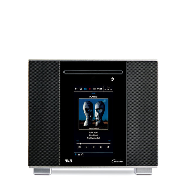 Der Caruso ist T+As kompakte All-in-One-Anlage der Luxusklasse: Ein aktives 2.1-Lautsprechersystem mit kräftiger interner Verstärkung, modernem Streaming-Client, hochwertigem CD-Laufwerk und Radioempfang vereint sich in einem resonanzarmen Gehäuse mit neuem Aluminium-Framework – für souveränen, raumfüllenden Klang bei minimalem Platzbedarf.