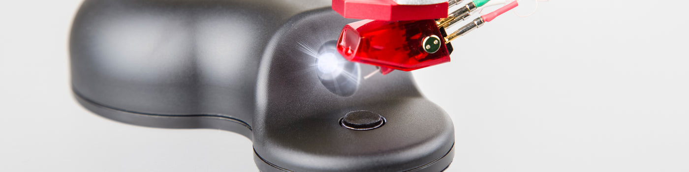 Er kombiniert Absaugung und elektrostatische Entladung, um Staubpartikel von Schallplatten zu entfernen.