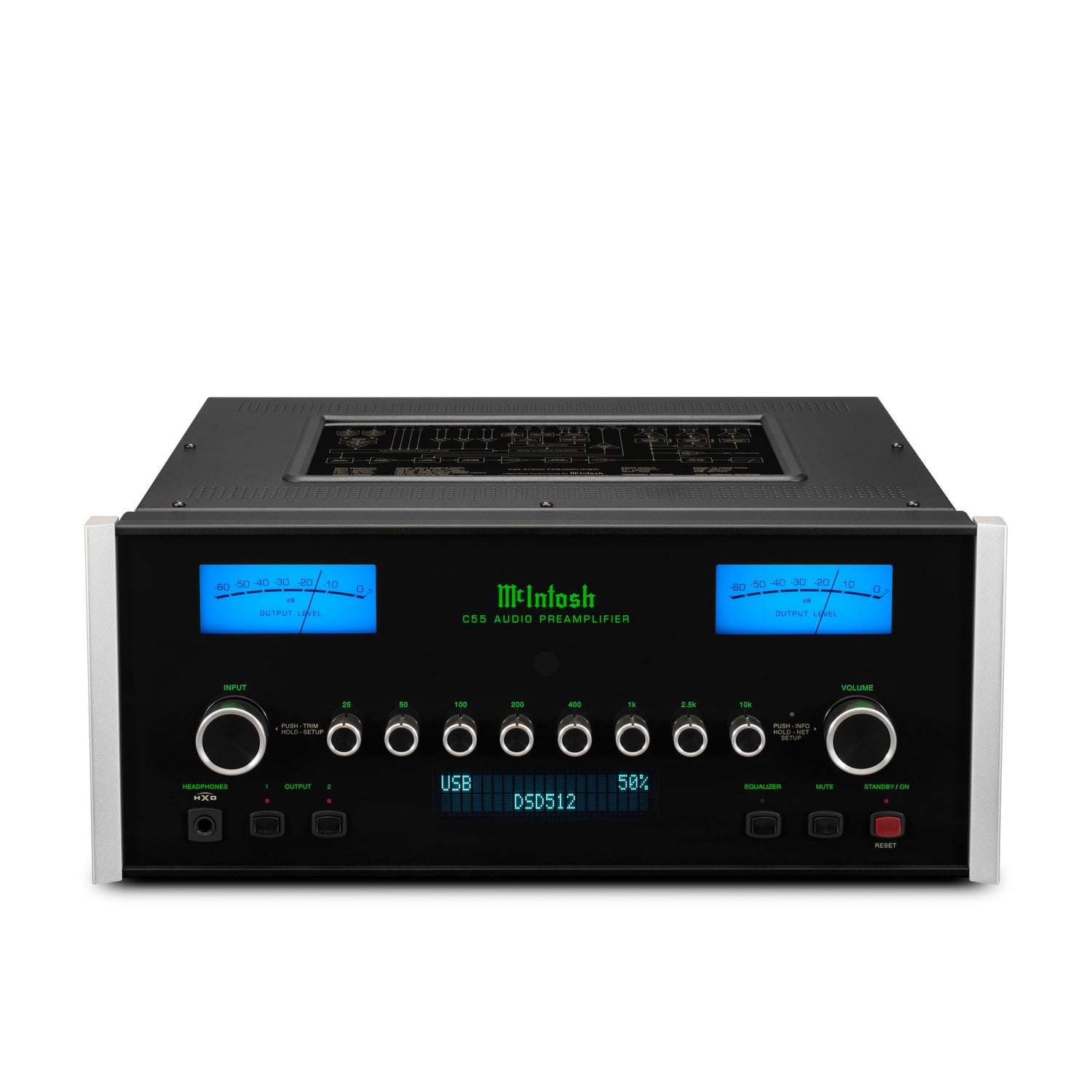 Mit drei symmetrischen, vier unsymmetrischen Hochpegeleingängen, zwei konfigurierbaren Phono‑Eingängen und sieben Digital‑Eingängen bildet der C55 das Herz jeder Anlage.