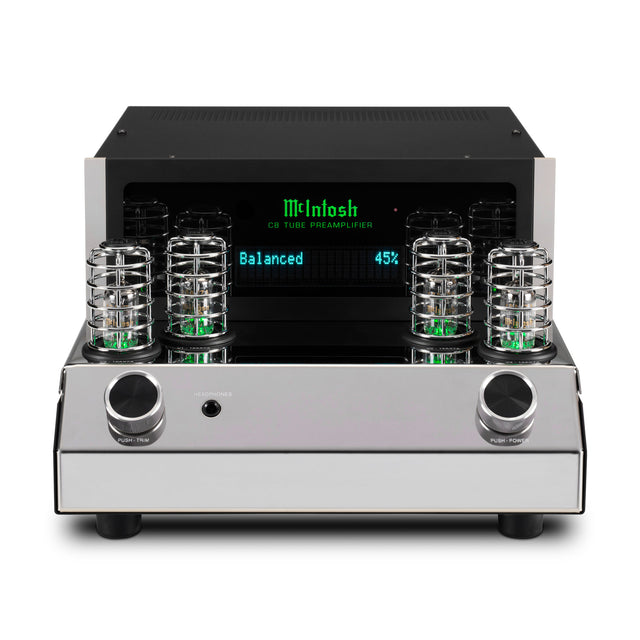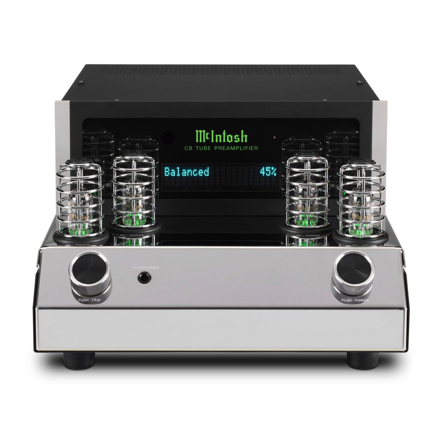 Die C8 setzt auf ein offen gestaltetes Gehäuse im Stil klassischer McIntosh‑Röhrenendstufen und liefert dank vier selektierter 12AX7A‑Röhren warmen, dynamischen Klang.