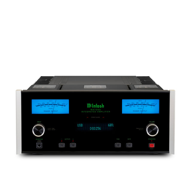 Der MA7200 liefert 200 W pro Kanal und garantiert dank McIntosh Autoformern dieselbe Leistung an 2, 4 oder 8 Ω. Die kräftige Endstufe behält auch bei schwierigen Lasten vollständige Kontrolle.