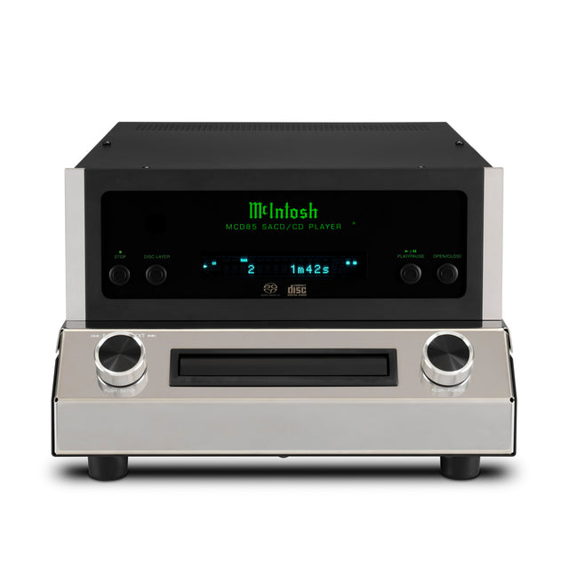 Der MCD85 spielt kommerzielle Scheiben sowie selbst gebrannte Daten‑Discs und USB‑Medien. Unterstützt werden Formate wie AAC, AIFF, ALAC, FLAC, WAV (24/192) und DSD bis 256.
