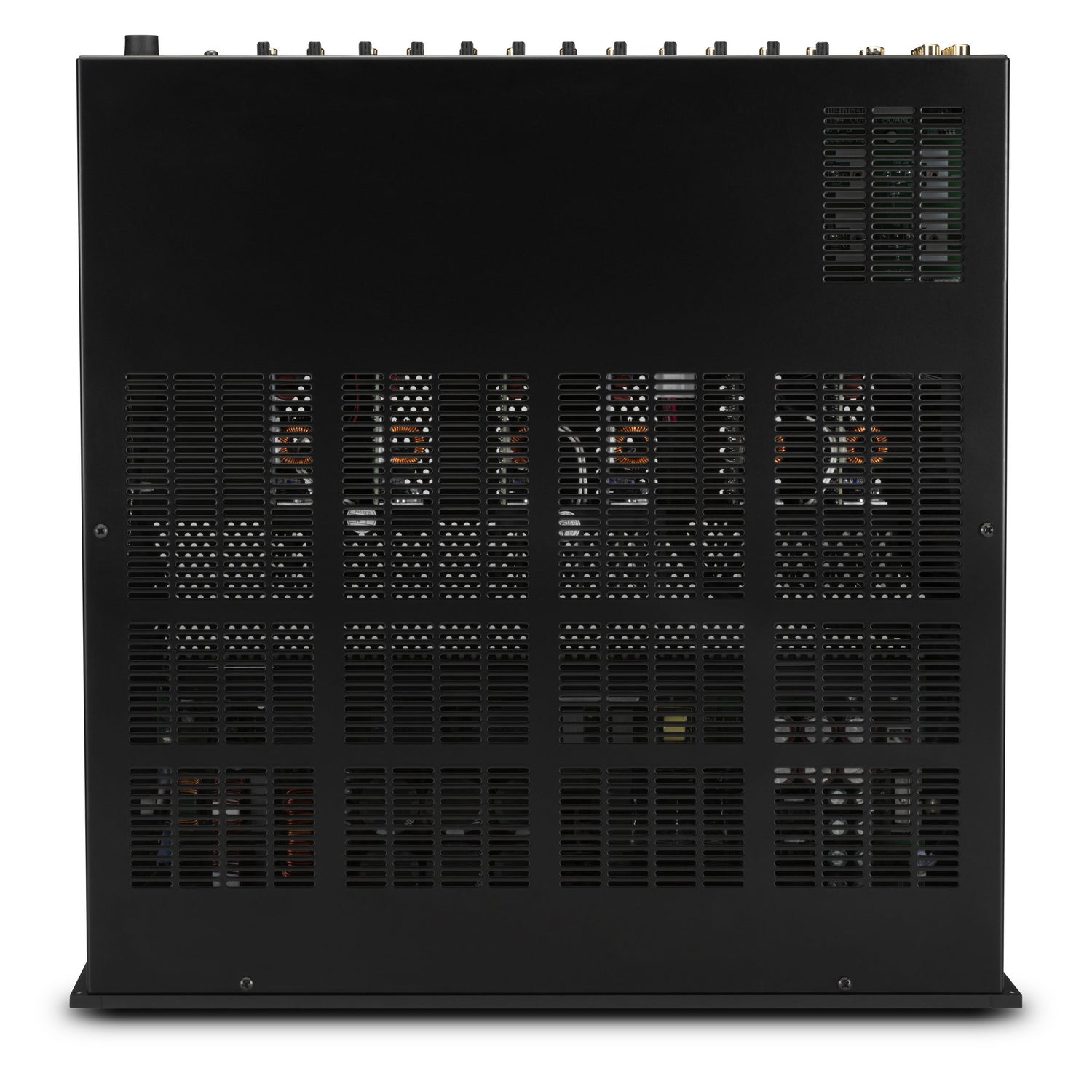 Hocheffiziente Schaltendstufen und massive Kühlprofile ersetzen Lüfter vollständig. Die Endstufe bleibt im Rack absolut geräuschlos und entwickelt nur wenig Abwärme.