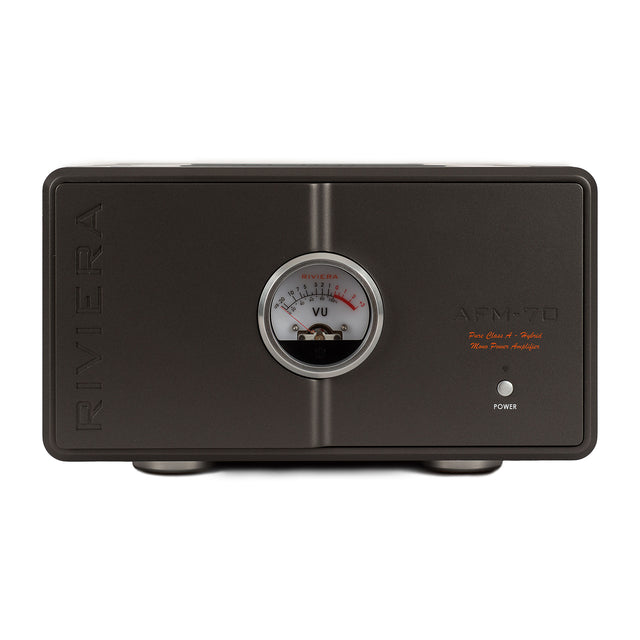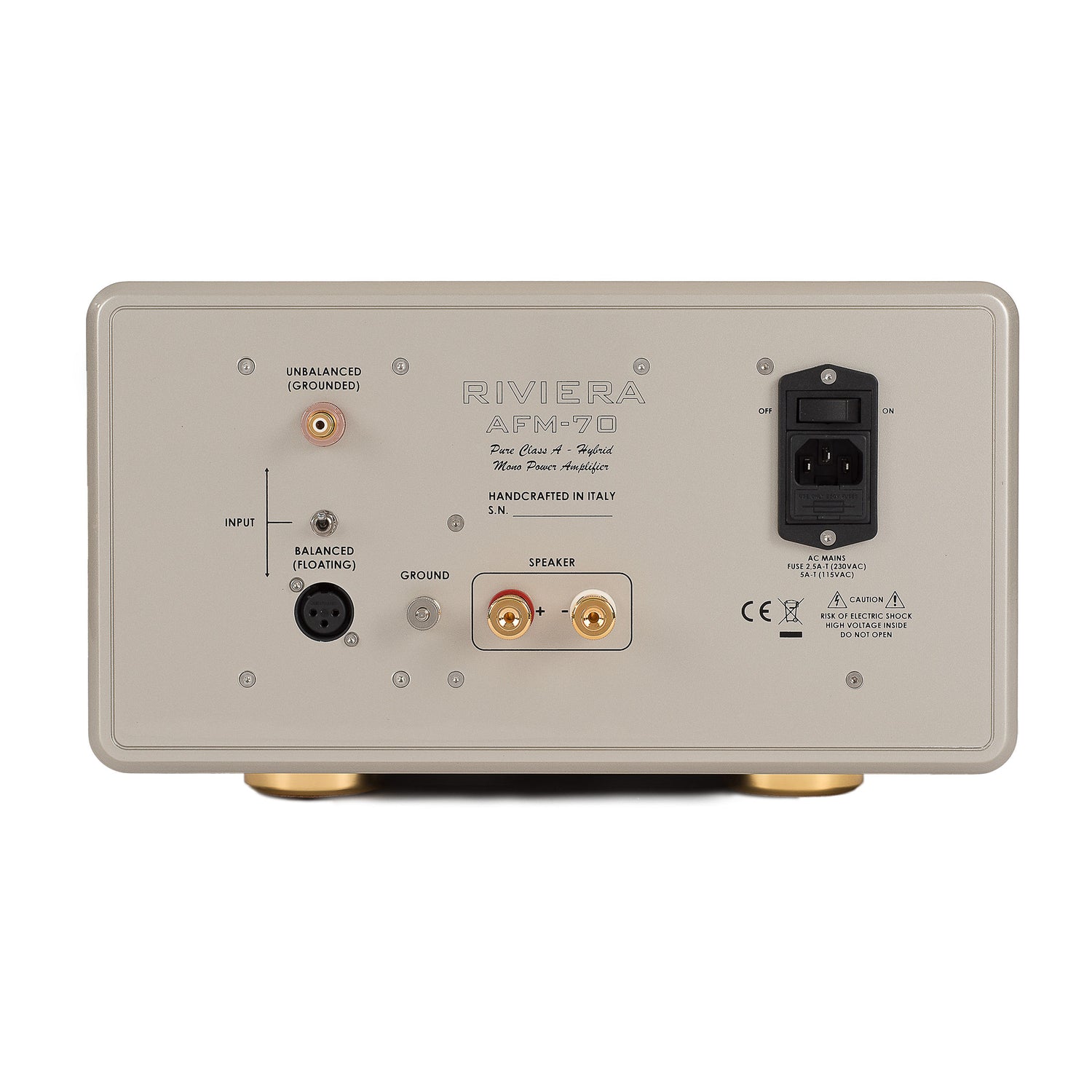 Innerhalb der Riviera Power-Amplifier-Linie ist die AFM70 als Class-A-Monoblock positioniert. Mit 70 Watt an 8 Ohm (140 Watt an 4 Ohm) richtet sie sich an Hörer, die die Riviera-Kernprinzipien im Monoblock-Format suchen und dabei sowohl Single-Amping als auch Multi-Amping in Betracht ziehen. Als Ausführungen nennt Riviera Gold und Dark Titanium.