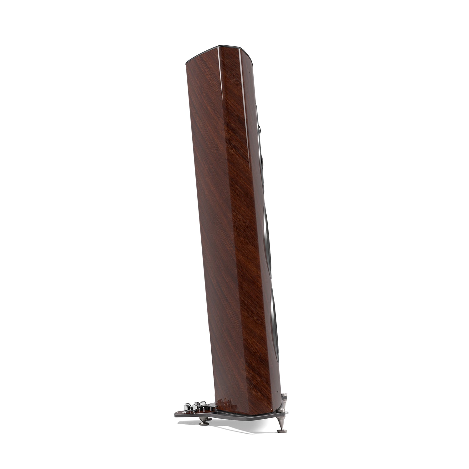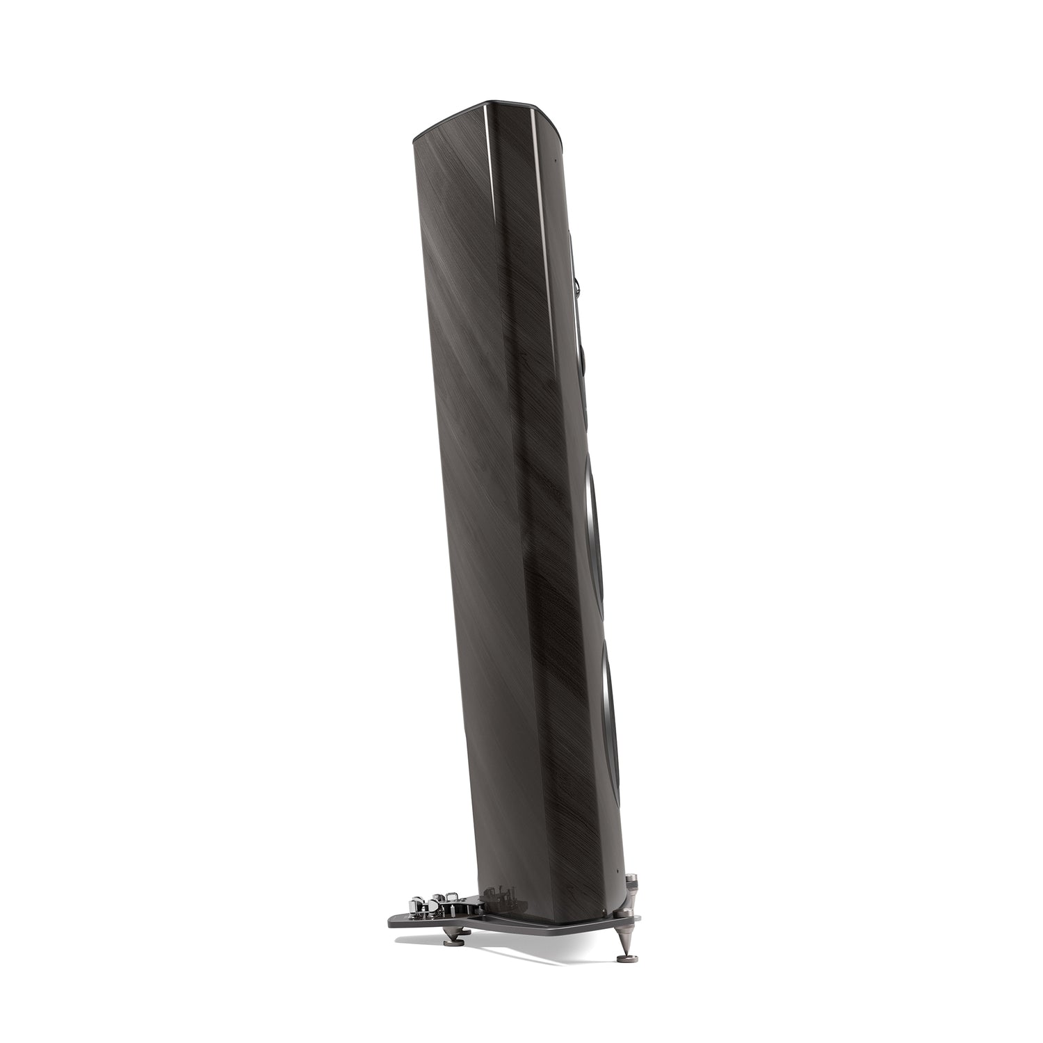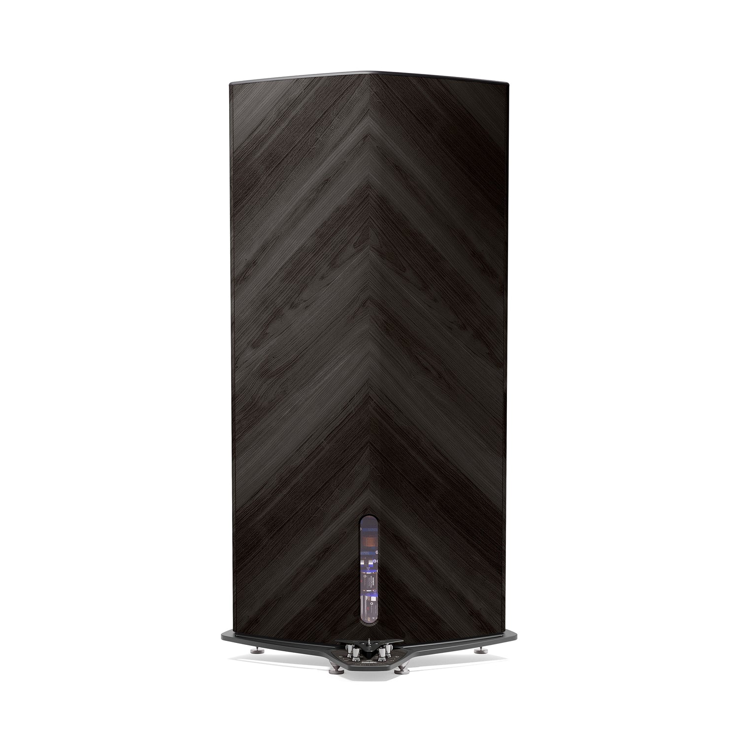Der Tiefton nutzt eine Clepsydra-Reflexgeometrie mit kurzem, nach unten abstrahlendem Kanal (Stealth Ultraflex). Nicht parallele Wände in der Woofer-Kammer minimieren stehende Wellen und erweitern die Bühne – bei zugleich flexibleren Aufstellmöglichkeiten.