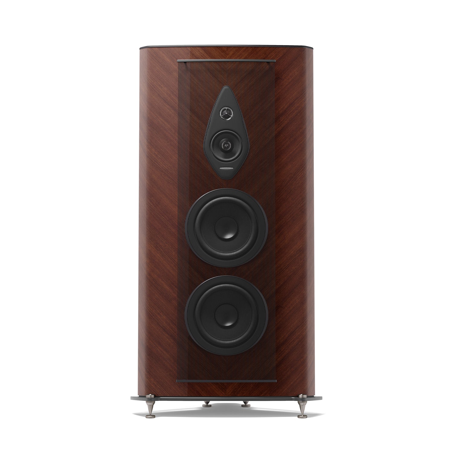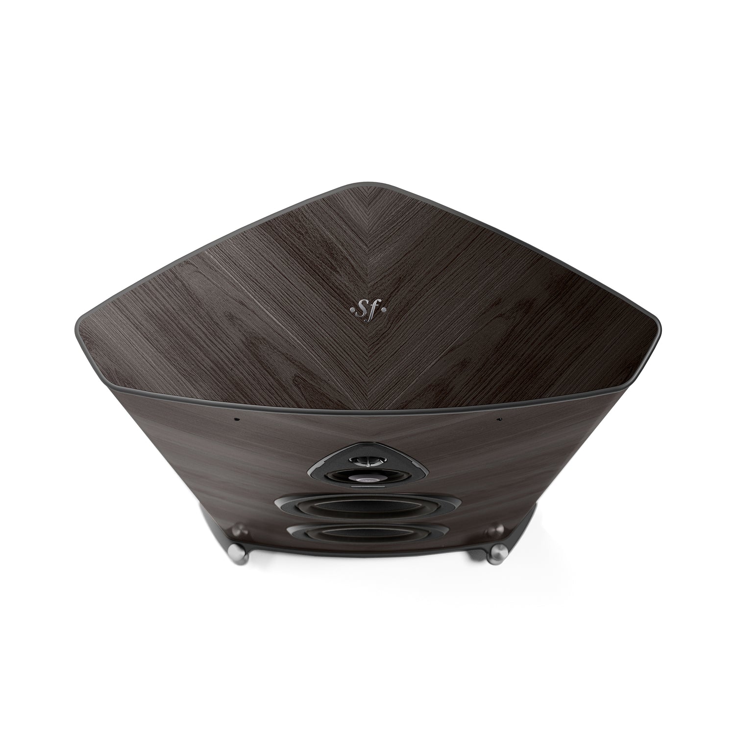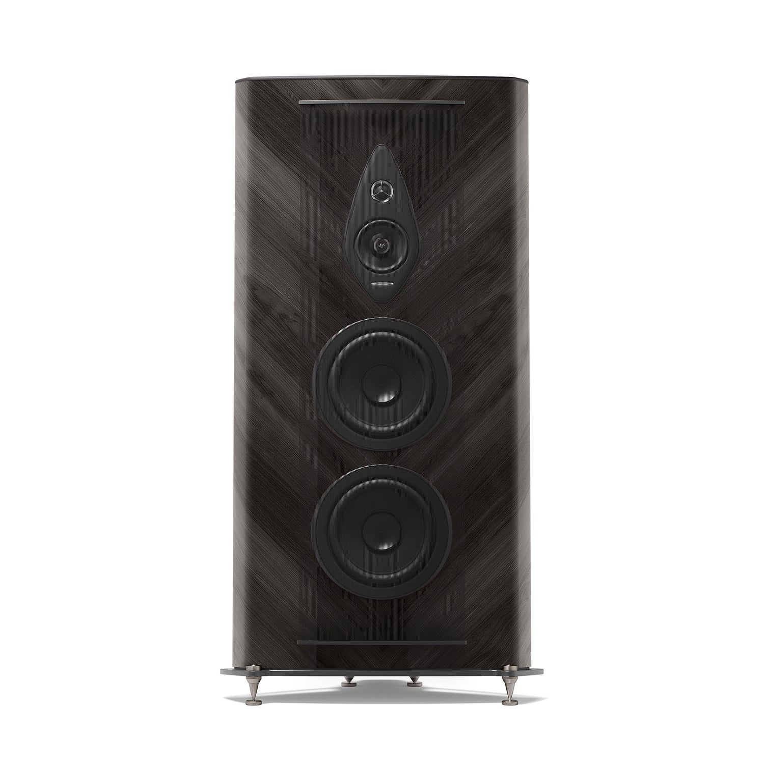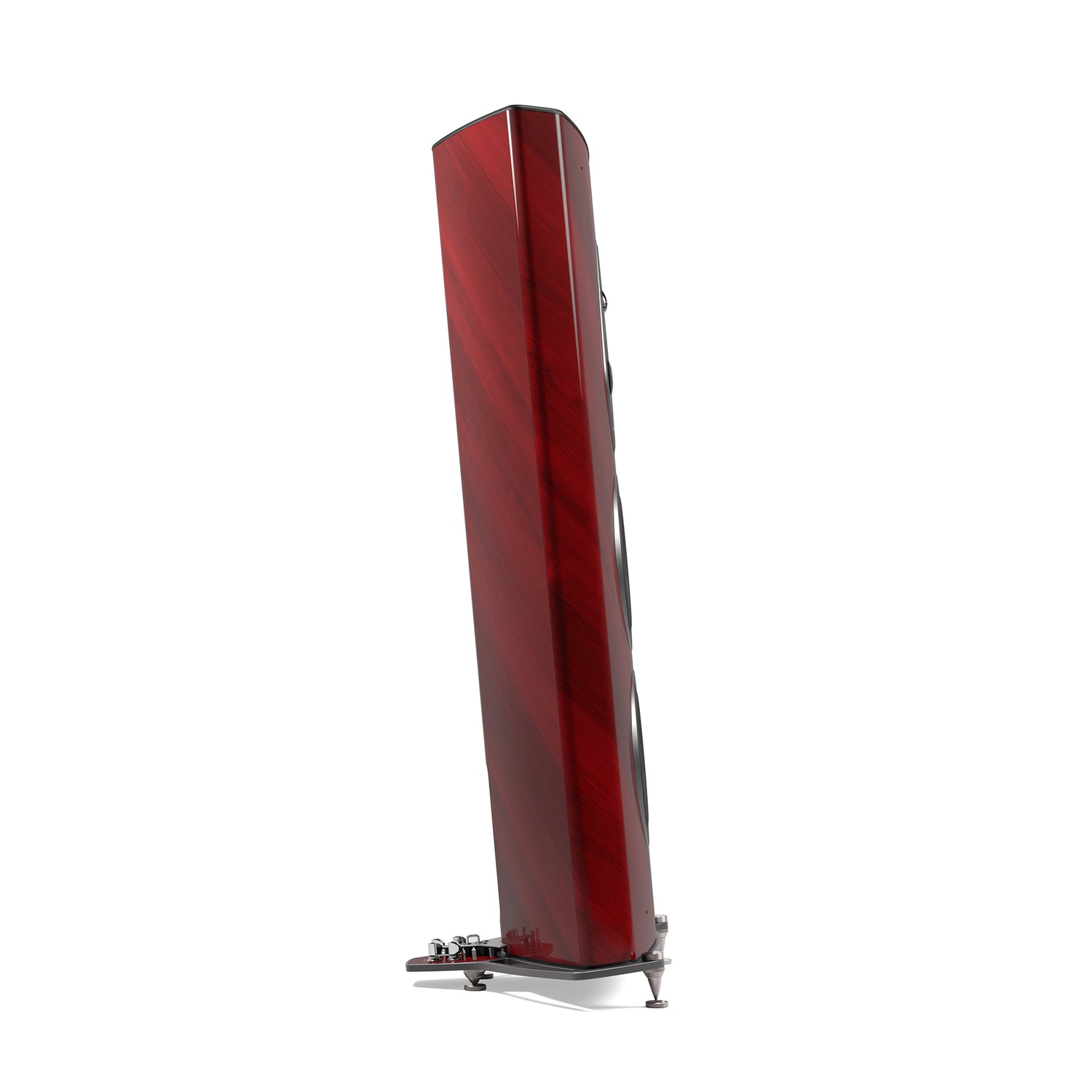 Der Tiefton nutzt eine Clepsydra-Reflexgeometrie mit kurzem, nach unten abstrahlendem Kanal (Stealth Ultraflex). Nicht parallele Wände in der Woofer-Kammer minimieren stehende Wellen und erweitern die Bühne – bei zugleich flexibleren Aufstellmöglichkeiten.