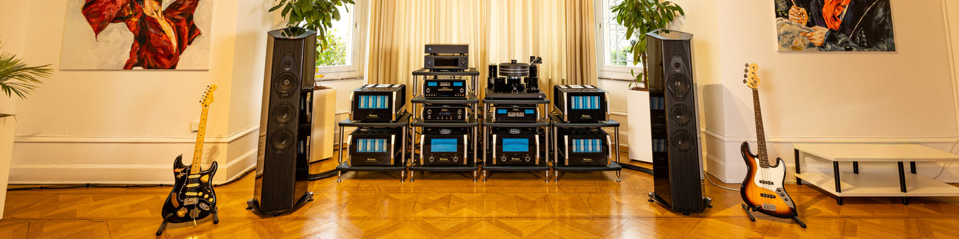 Im Beethoven zeigen wir High-End mit Ruhe und Kontrolle. Eine komplette McIntosh-Referenzkette spielt an Sonus-faber-Lautsprechern und überzeugt mit belastbarer Dynamik, klarer Staffelung und stabiler Abbildung. Als Quellen stehen ein Kuzma-Referenz-Plattenspieler und ein Aurender-Streamer mit externer Clock bereit. Die Anlage sitzt auf Bassocontinuo-Racks (MC-Edition), verkabelt mit Shunyata Research. Der Raum eignet sich, um orchestrale Werke, Live-Aufnahmen und komplexe Produktionen realistisch zu beurteilen.